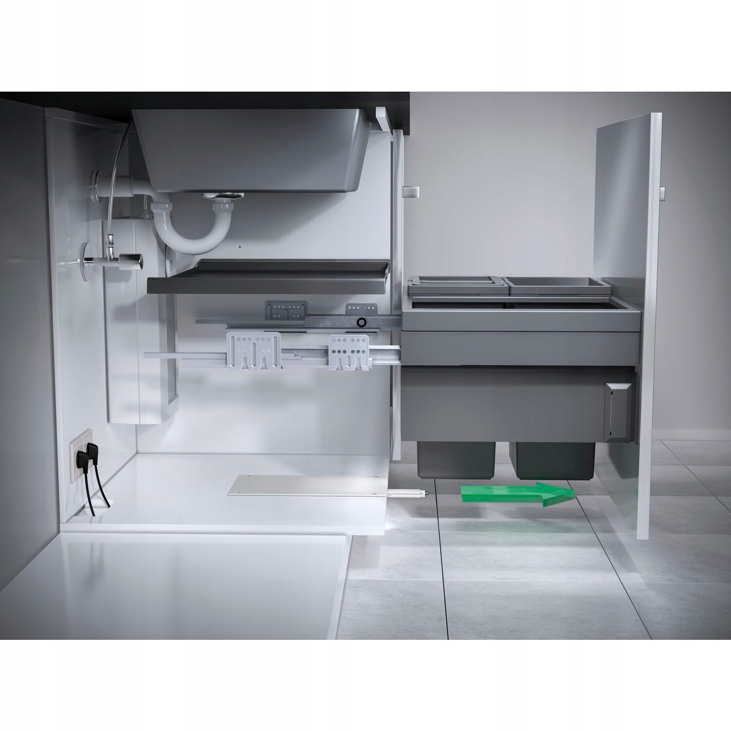 Nowy mechanizm otwierania z czujnikiem laserowym firmy Hafele zapewnia automatyczne, wygodne otwieranie wszystkich systemów wysuwnych i segregacji odpadów mocowanych do frontu.