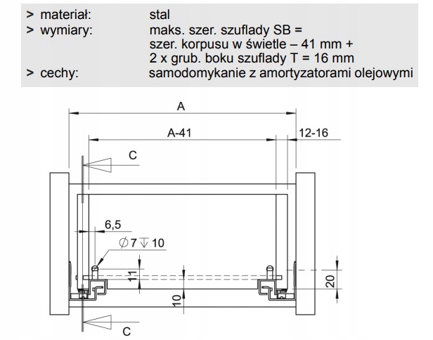 Do grubości boków szuflady 16 mm