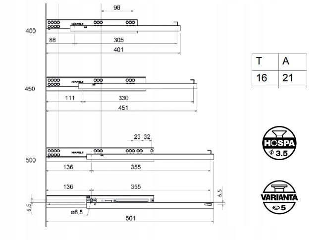 Prowadnica Favorit Hamulec częściowy wysuw PIN Hafele 500